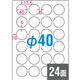 エーワン ラベルシール[プリンタ兼用]ハイグレードタイプ マット紙・ホワイト A4 24面 丸型40mm 76724 1冊(100シート)