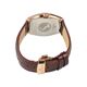 光沢のある上質な革を使い、靴と同じウィング・チップのデザインがバンドに入っている時計です。デイ・デイト24時間計機能付きマルチファンクションの機能も充実しているモデルです。