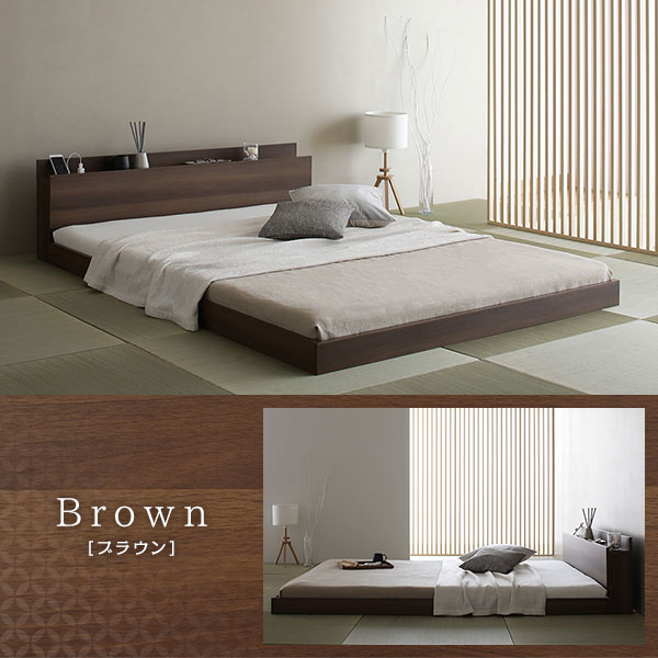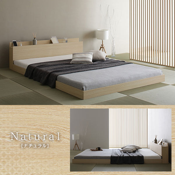 ベッド シングル ボンネルコイルマットレス付き ナチュラル 低床 すのこ 宮付き 棚付き コンセント付き ローベッド 組立品