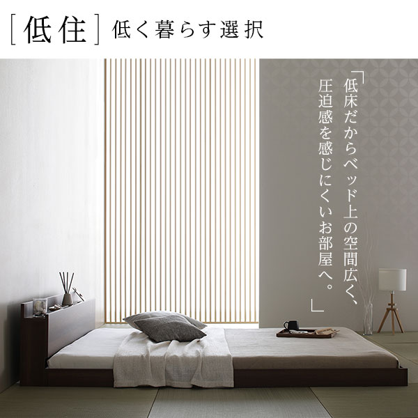 低床だからベッドの上の空間広く、圧迫感を感じにくいお部屋へ。