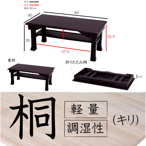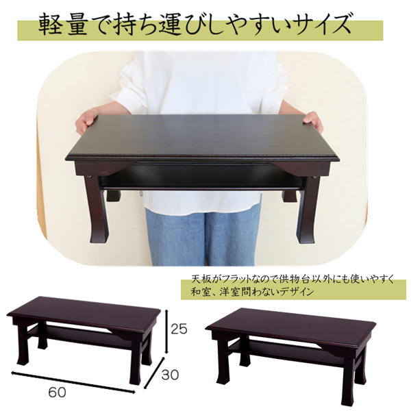 ミニテーブル 経机 幅60cm ブラウン 木製 桐製 軽量 持ち運び便利 折りたたみ便利机 供養台 配膳台 完成品 お仏壇 仏間 リビング