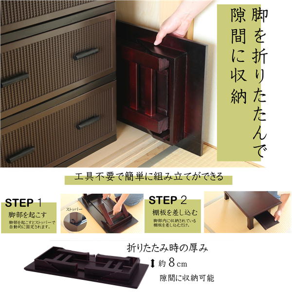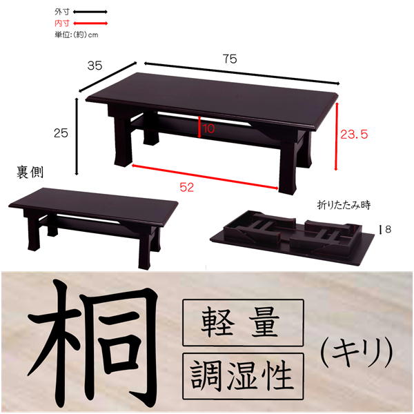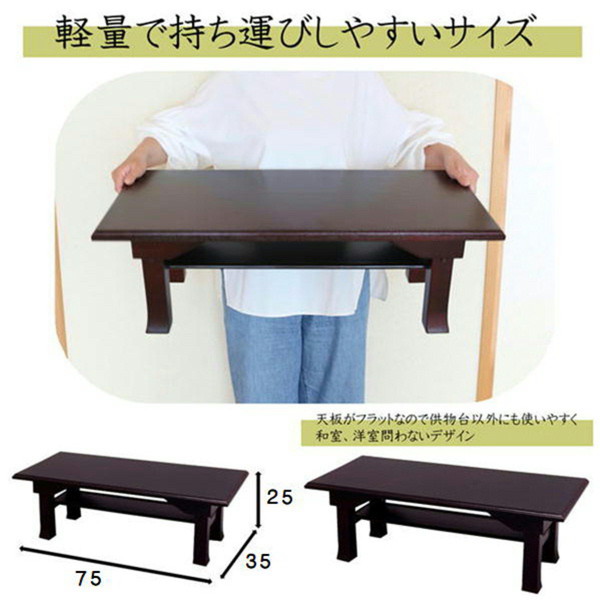 ミニテーブル 経机 幅75cm ブラウン 木製 桐製 軽量 持ち運び便利 折りたたみ便利机 供養台 配膳台 完成品 お仏壇 仏間 リビング