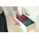 - アンティーク調の取っ手。引き出しはアウトセットで引出しの前板が胴板より前に出て、胴板の木口がほぼ見えない仕様。リビングにはもちろん、ベッドサイドやファックス台にも便利。