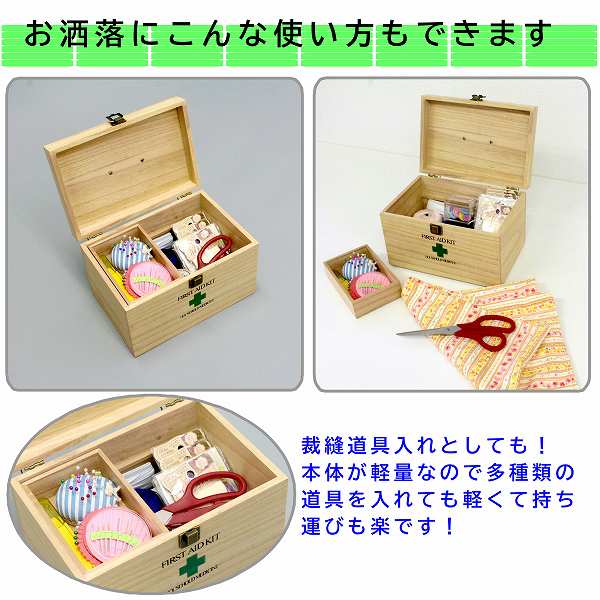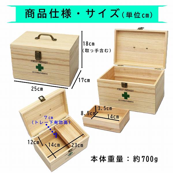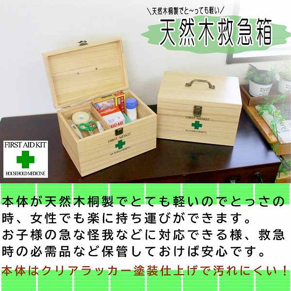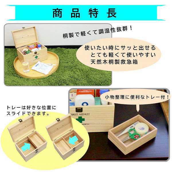 救急箱 薬箱 約幅25×奥行17×高さ18cm 桐製 木製 小物整理トレー付き 調湿効果 家庭用 オフィス 会社 常備薬