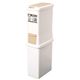 - 上段はワンプッシュ開閉式・下段は前開放設計タイプ。袋の装着がラクにできるポリ袋押さえ付き。置く場所に困らないすき間タイプ。狭い所や幅の狭い所を有効活用出来る分別ペール。分別用シール付き。キッチンで使うのに最適な二段式分別ダストボックスです。上下で分かれているので上段は可燃ごみ、下段は不燃ごみをと仕分けに便利です。上下段ともポリ袋おさえ付きで外に袋がはみ出ることなくスッキリ取り付けられます。上段フタは片手でワンプッシュオープン。下段の投入口は広口で2Lサイズのペットボトルも捨てられます。積み重ねて二分別できる省スペースダストボックス。