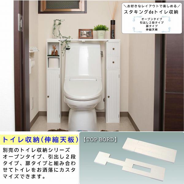 スタッキング de トイレ収納用 伸縮式天板 約幅60〜80×奥行15×高さ3cm ホワイト ラック別売 トイレラック トイレ収納