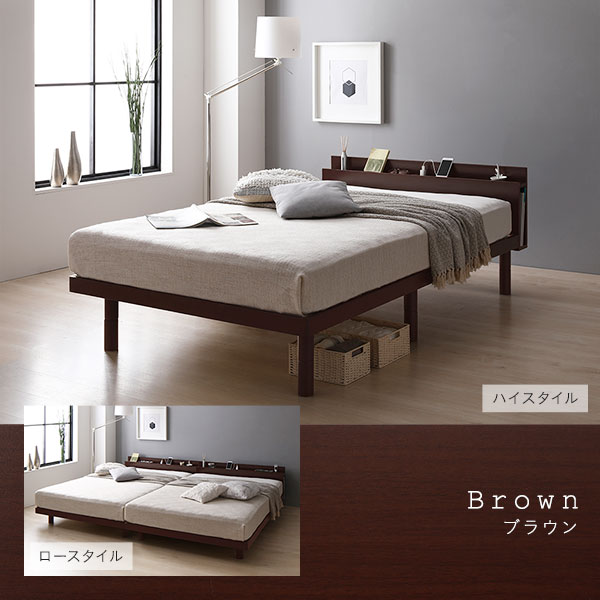 スマホスタンド型ヘッドボードのナチュラル天然木ベッド