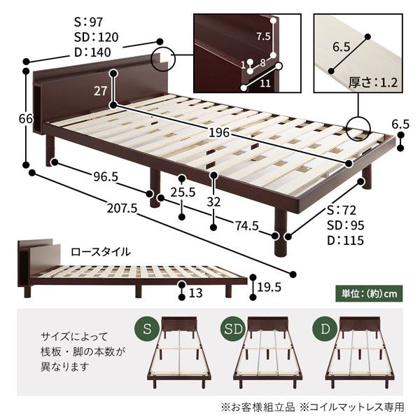 セミダブル:幅120×長さ207.5×高さ66cm
