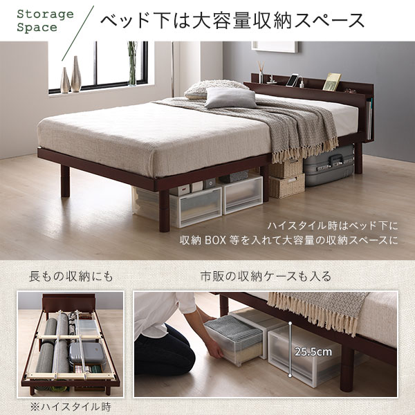 ハイスタイル時はベッド下に収納BOX等を入れて大容量の収納スペースに