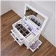 ●収納:引出×3杯(正面×2・側面×1)・天板を開けると小物収納・ティッシュ(深さ約21cm)。