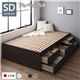 〔お客様組み立て〕 収納 ベッド ヘッドレス 通常丈 セミダブル フレームのみ ブラウン 収納付き すのこ 日本製