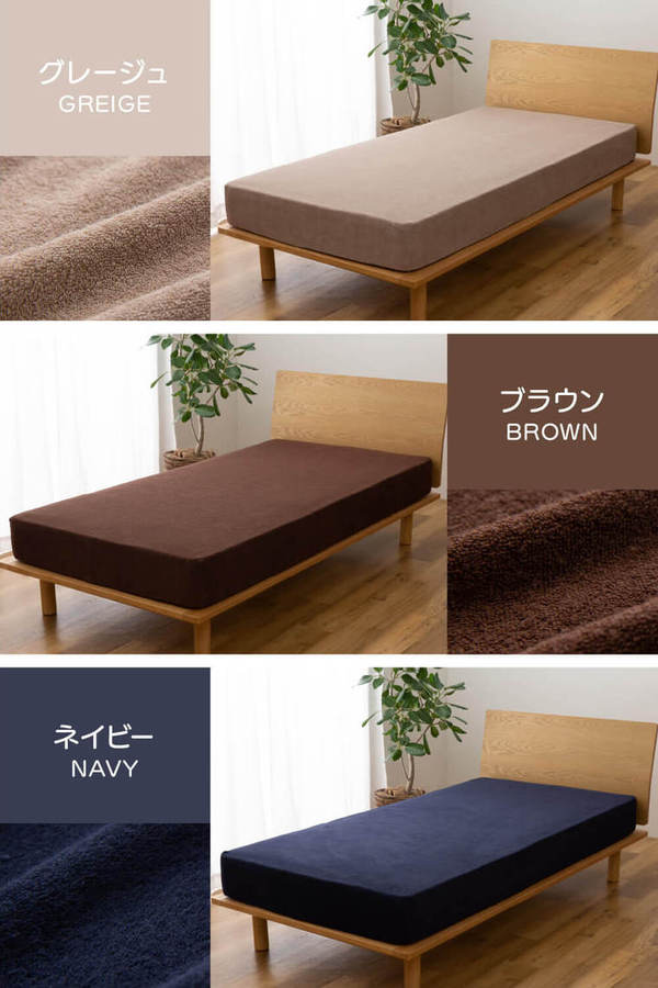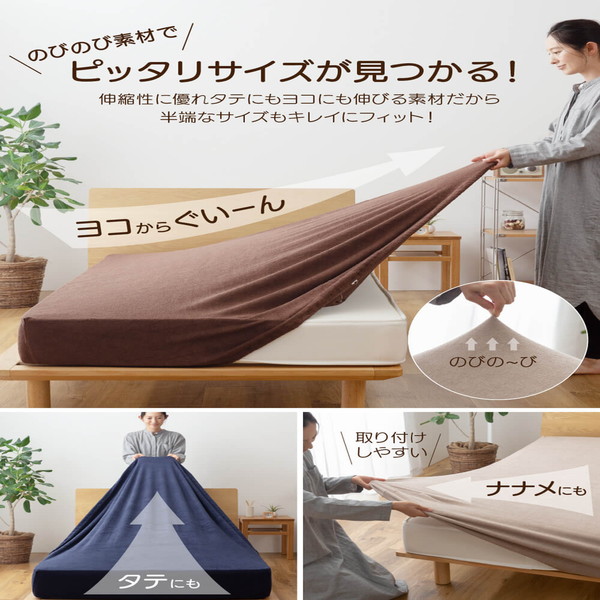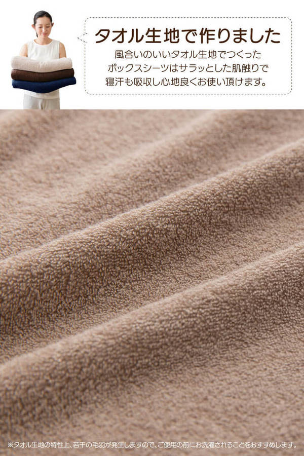 ベッドシーツ 寝具 80〜100×185〜215cm SS〜S ブラウン のびのびタオル地 ピッタリフィット ボックスシーツ ベッドルーム