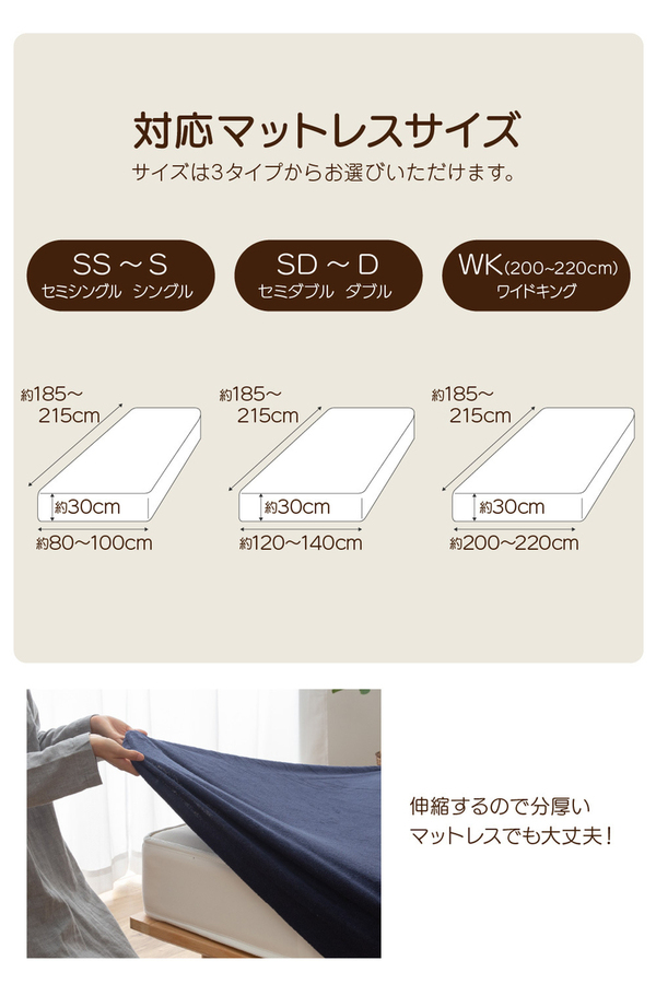タオル地だからオールシーズン使える!ふんわり厚みのあるボックスシーツ。タテヨコ伸縮素材なので取り付け超カンタン!SS〜Sサイズにぴったりフィット! - スペック