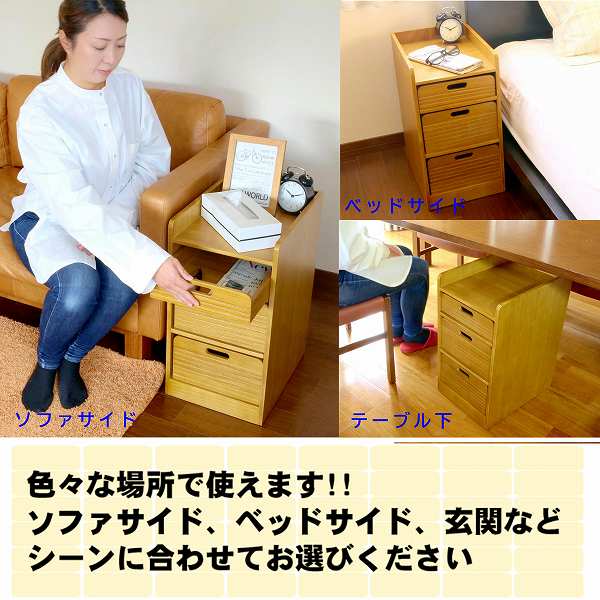 収納棚 サイドボード 約幅30cm 3段 ライトブラウン 木製 天然木 桐材 キャスター付き 軽量 トレイワゴン 完成品 リビング