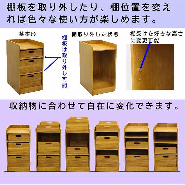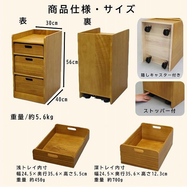 - 棚板は可動式なので収納物に合わせて高さの変更が可能!隠しキャスター付きで移動もラクラク!全ての引き出しはトレイになっているのでトレイごと持ち運びもできて便利です!桐製で軽量なので、女性でも扱いやすい!組み立て作業一切不要の完成品仕様!!(キャスターも付いた状態でお届けいたします。)