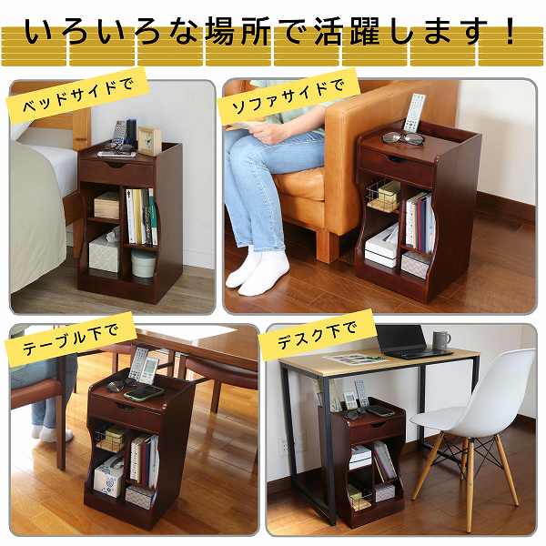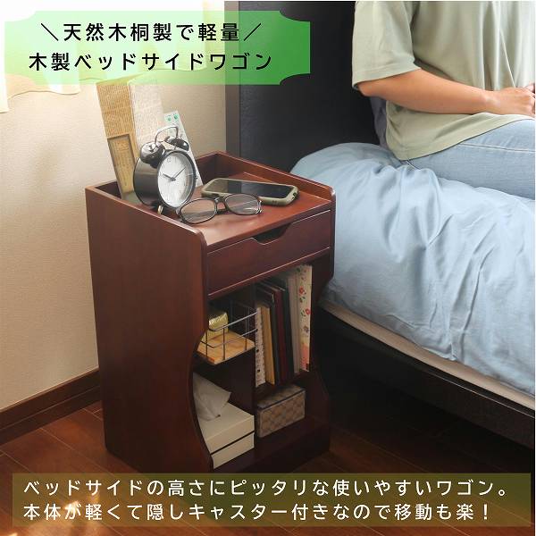 ベッドサイドワゴン 収納ワゴン 幅30cm ブラウン 木製 天然木 桐材 軽量 隠しキャスター付き 収納家具