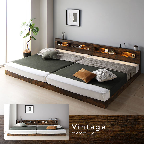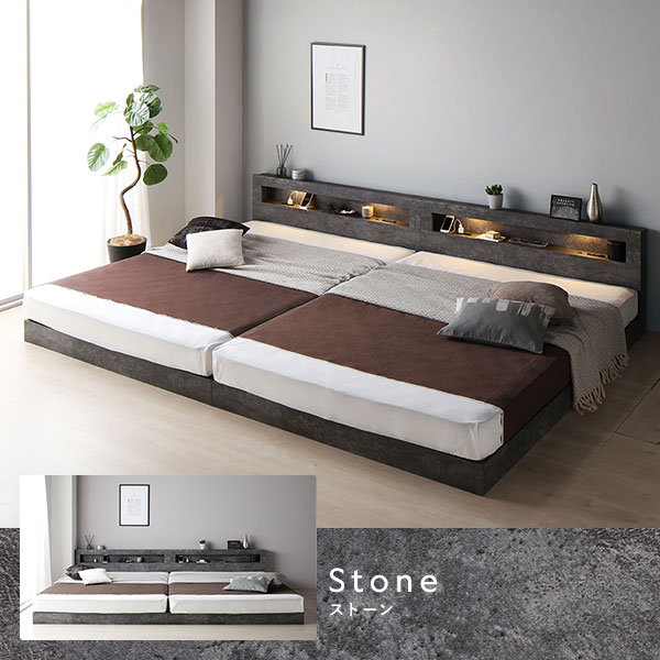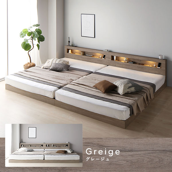 ベッド ワイドキング 200 S+S ボンネルコイルマットレス付 ストーングレー 連結 低床 照明 宮付 すのこ