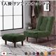 ハイバック ソファー 〔 1人掛け オットマン付き コーデュロイ生地 モスグリーン 〕 脚部:ブラウン リクライニング 日本製