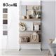 突っ張り ウォールラック 〔 80cm幅 ナチュラル×ホワイト 〕 ミラー付き 壁面収納 棚 賃貸OK 組立品