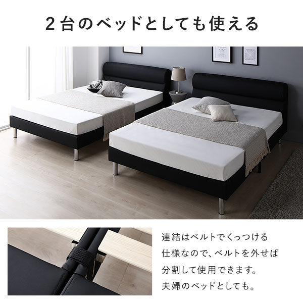 ベッド ワイドキング 200 S+S 2層ポケットコイルマットレス付 厚み21cm ブラック 連結 高さ調整 脚付 PVCレザー すのこ