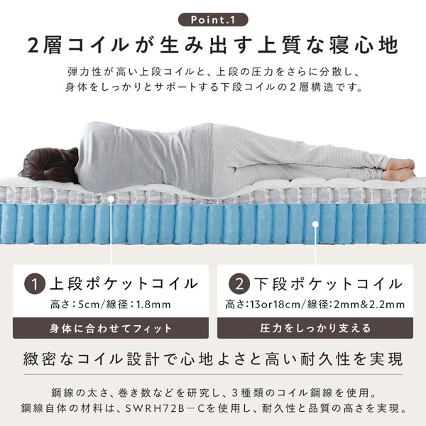 ポケットコイルを2層仕様にし、贅沢な寝心地を実現しました。