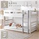 2段 ベッド ショート丈シングル 国産薄型ポケットコイルマットレス付き ホワイト×グレー 連結&分割可 ベッドフレーム 組立品