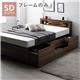 照明 宮付 チェスト ベッド セミダブル ブラウン ベッドフレームのみ 引き出し 収納ベッド