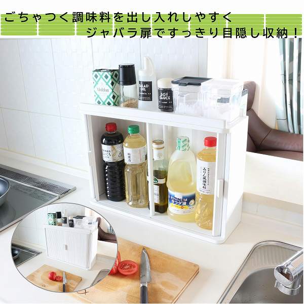 調味料ケース 幅50cm ホワイト ジャバラ扉 ボトル収納 スパイスラック キッチンラック キッチン収納 調味料収納