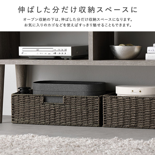 オープン収納の下は、伸ばした分だけ収納スペースになります。