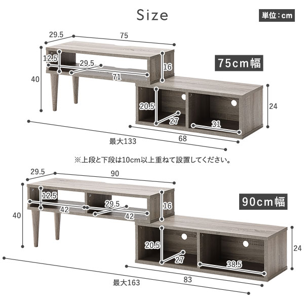 75cm幅:幅75〜133×奥行29.5×高さ40cm