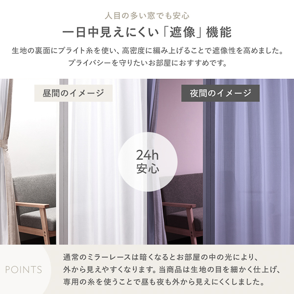 室内のシルエットが映らないので、プライベート空間をしっかりと守ります。
