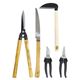 セット内容 : 剪定鋏(全長19cm)・園芸鋏(全長19cm)・折込鋸(全長48cm)・刈込鋏(全長49cm)・小鎌(全長30.5cm)×各1
