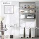 レンジラック ゴミ箱上収納タイプ 幅85cm 木目調 グレージュ×ホワイト スチール 可能棚付 キッチン収納 キッチンラック