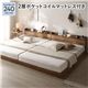 ベッド ワイドキング 240 SD+SD 2層ポケットコイルマットレス付き シャビーオーク 低床 連結 ローベッド ロータイプ すのこ 照明付き 宮付き 棚付き コンセント付き 組立品