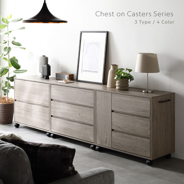 キャスター付き 収納 チェスト 〔 2段 約幅75×奥行39×高さ66.7cm ナチュラル 〕 取っ手付き タンス 収納家具