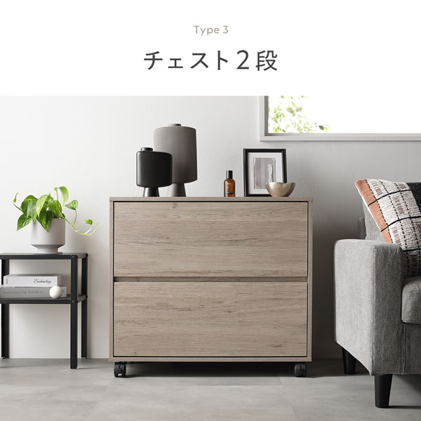 チェスト2段:(1)幅82.5×奥行43.5×高さ20.5cm・27.8kg