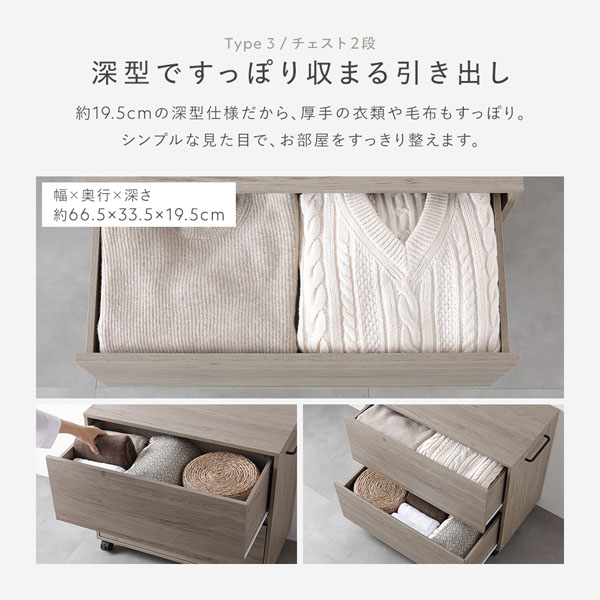 余裕のある約66.5cm幅で、衣類整理にぴったり。