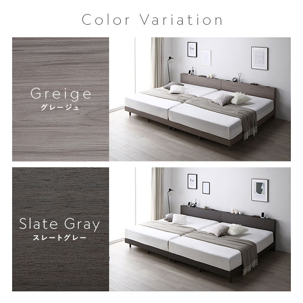 ベッド ワイドキング 200 S+S 3ゾーンポケットコイルマットレス付 グレージュ 連結 すのこ 宮付 脚付 ローベッド