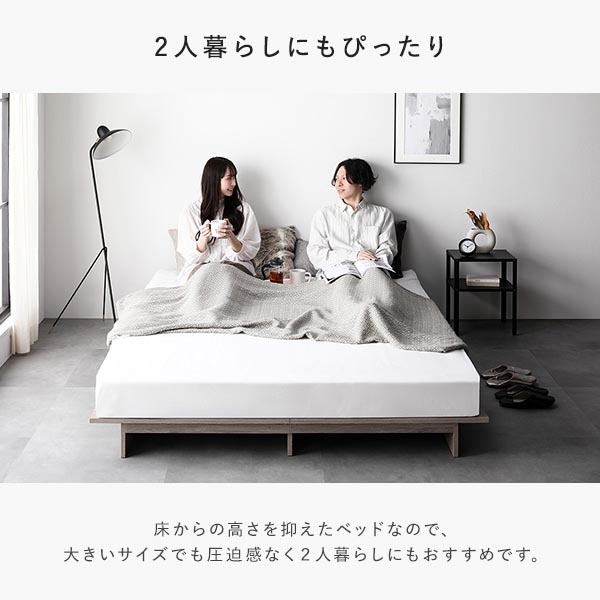 床からの高さを抑えたベッドなので、大きいサイズでも圧迫感なく2人暮らしにもおすすめです。