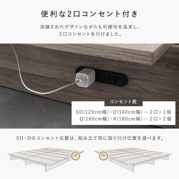 ※本販売ページのサイズ表記(SD/D/Q/K)はマットレス幅とフレーム幅が