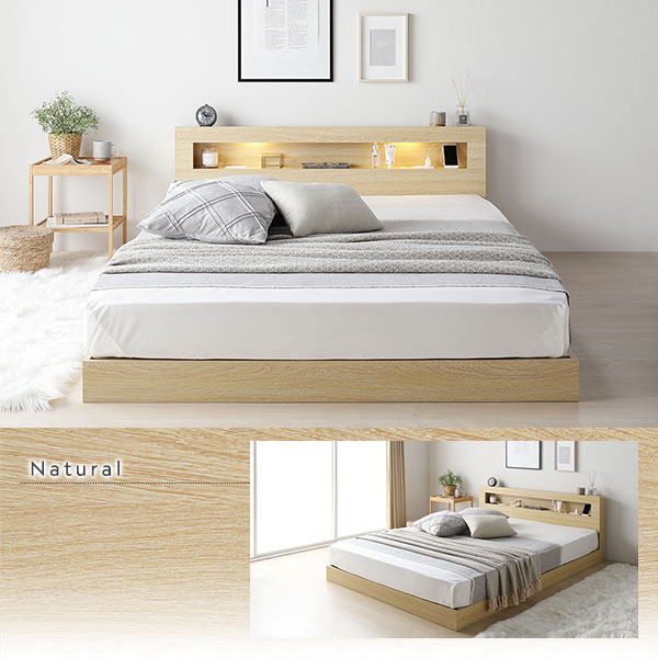 セミシングル・シングルは真ん中に1灯、セミダブル・ダブル・クイーンは左右両側に2灯のLED照明付き