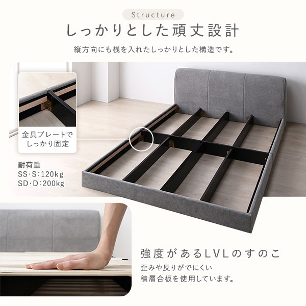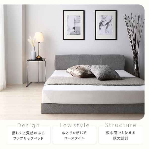 ファブリック ローベッド セミダブル 3ゾーンポケットコイルマットレス付 ベージュ すのこ ベッド