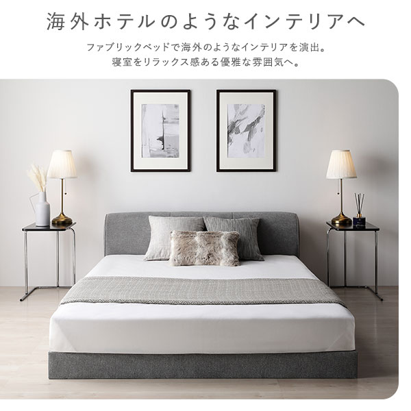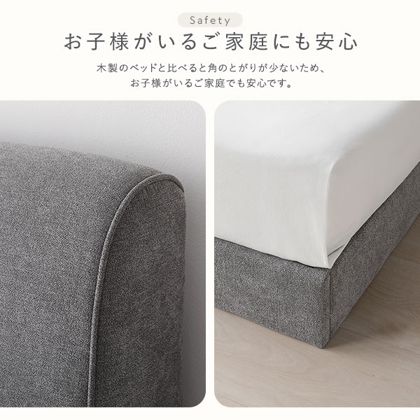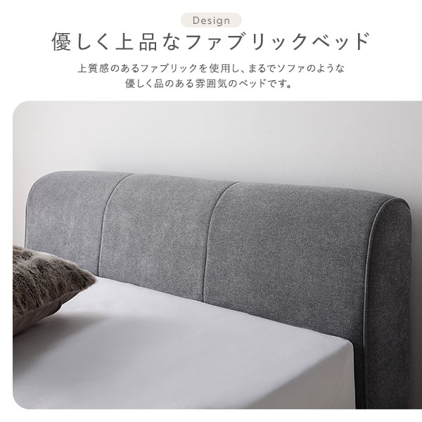 ファブリックの柔らかい雰囲気が魅力のシンプルなベッドです。