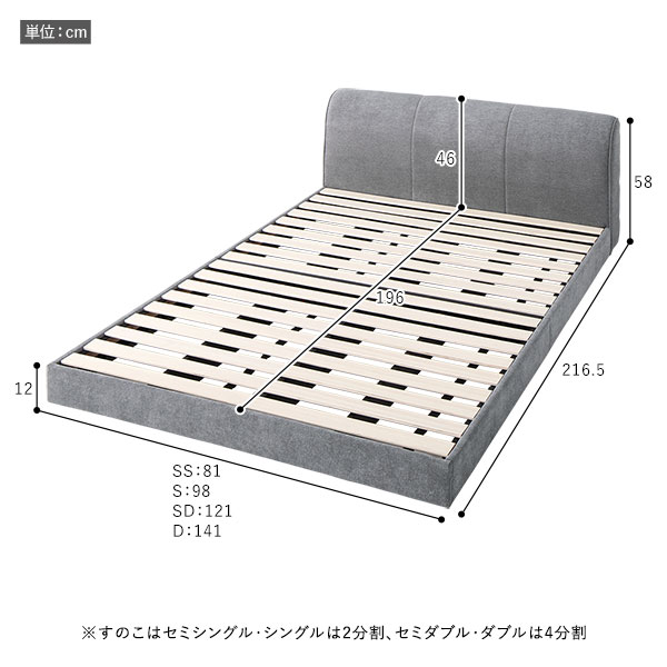 ※すのこはセミシングル・シングルは2分割、セミダブル・ダブルは4分割