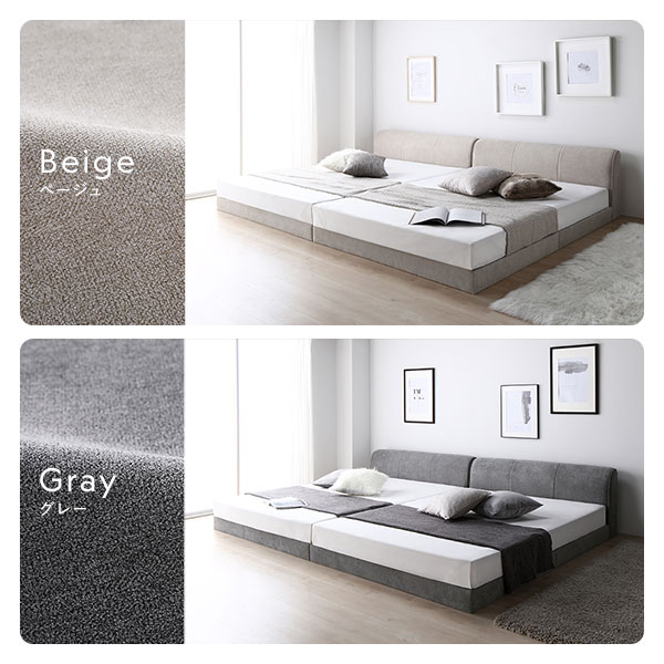 ファブリック ローベッド クイーン 160 SS+SS 3ゾーンポケットコイルマットレス付 ベージュ 連結 すのこ ベッド