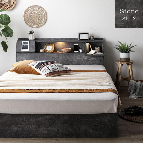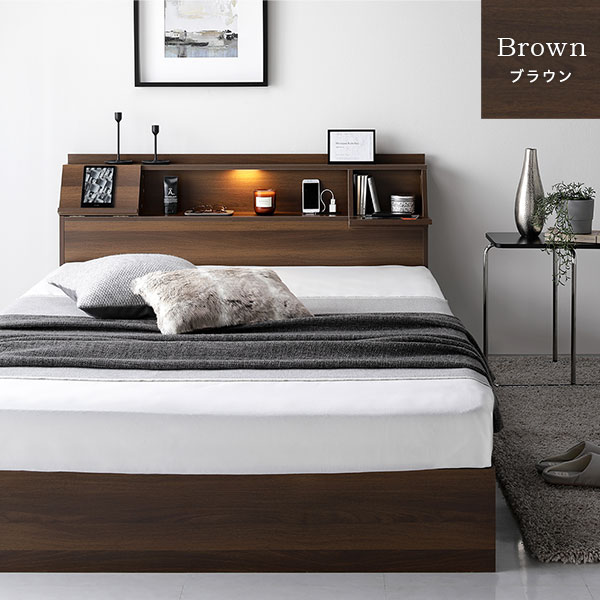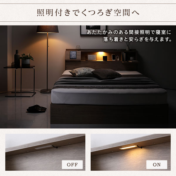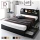 ベッド ダブル 3ゾーンポケットコイルマットレス付き ブラック フラップ扉 照明付 収納付 棚付 宮付 コンセント付
