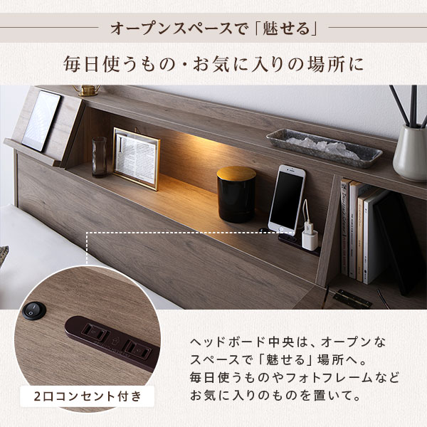 ヘッドボード中央は、オープンなスペースで「魅せる」場所へ。