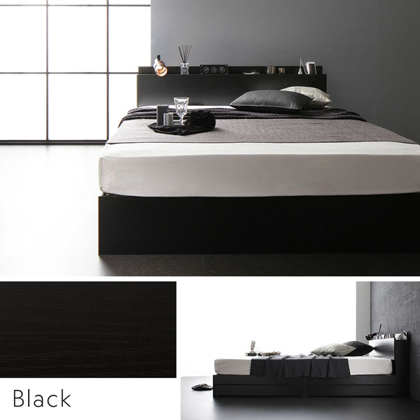 ベッド シングル 3ゾーンポケットコイルマットレス付 ブラック 宮付 収納ベッド