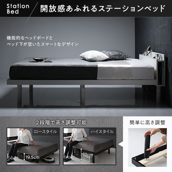 ハイスタイル時はベッド下に収納BOX等を入れて大容量の収納スペースに