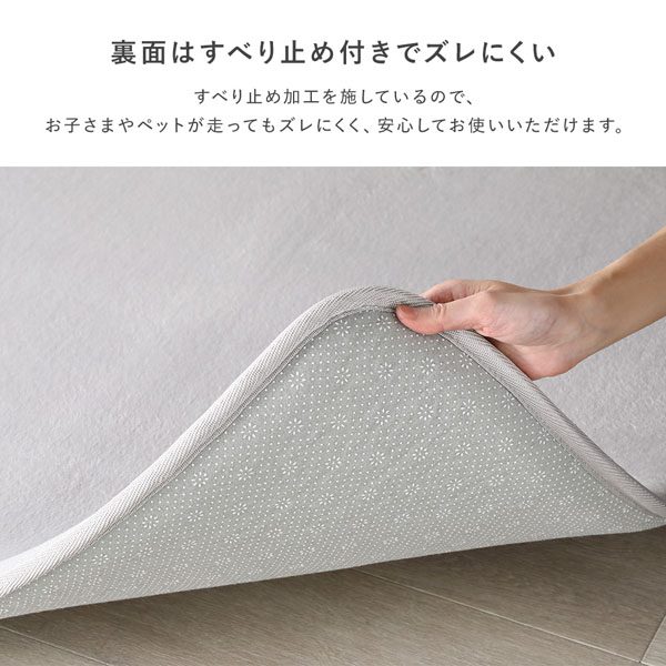 ・本商品はなめらかな風合いに仕上げているため、ラグの上は滑る場合がございますので、転倒防止の観点から十分に気をつけてご使用ください。